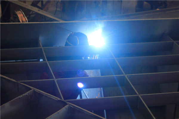 天橋主要結(jié)構(gòu)部件均采用 Q345qC 全焊鋼結(jié)構(gòu)。鋼結(jié)構(gòu)連接均采用雙面貼角焊縫全縫焊接。制作時(shí),鋼箱梁制作段接口處設(shè)置施工臨時(shí)支架,工廠均對(duì)鋼構(gòu)件預(yù)制節(jié)段。為保證箱梁制作質(zhì)量,鋼板采用數(shù)控切割機(jī)切割,以確保構(gòu)件尺寸在允許誤差范圍內(nèi)。