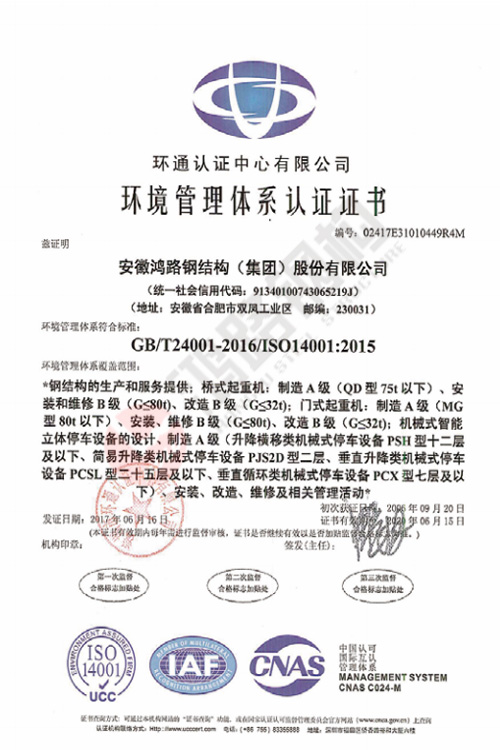 環(huán)境管理體系認(rèn)證證書